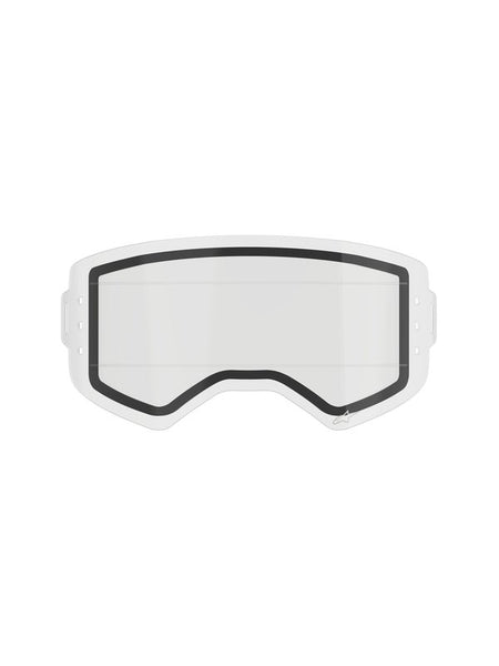 Alpinestars Supertech Double Pane Roll-Off Lins är utvecklad för att ge maximal sikt i alla väderförhållanden. Den dubbla linskonstruktionen minimerar kondensation genom att kombinera en stötresistent, formsprutad polykarbonat-yttre lins med en tätad inre lins i polykarbonat, sammanfogad med neopren. Detta skapar stabil temperatur och minskad imbildning inne i glasögonen. Linsen är 100% UVA-skyddad och utrustad med integrerade silikon-glidlinjer som säkerställer att roll-off-filmen rullar jämnt utan att fastna.