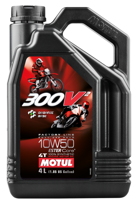 Motul 300V 4T Factory Line 10W-50 är en helsyntetisk racingolja för 4-taktsmotorer, utvecklad för professionella fabriksteam och förare som kräver maximal prestanda. Oljan bygger på Motuls unika ESTER Core®-teknologi, som kombinerar avancerade estrar med högpresterande basoljor för att uppnå perfekt balans mellan kraft, slitageskydd och tillförlitlighet.